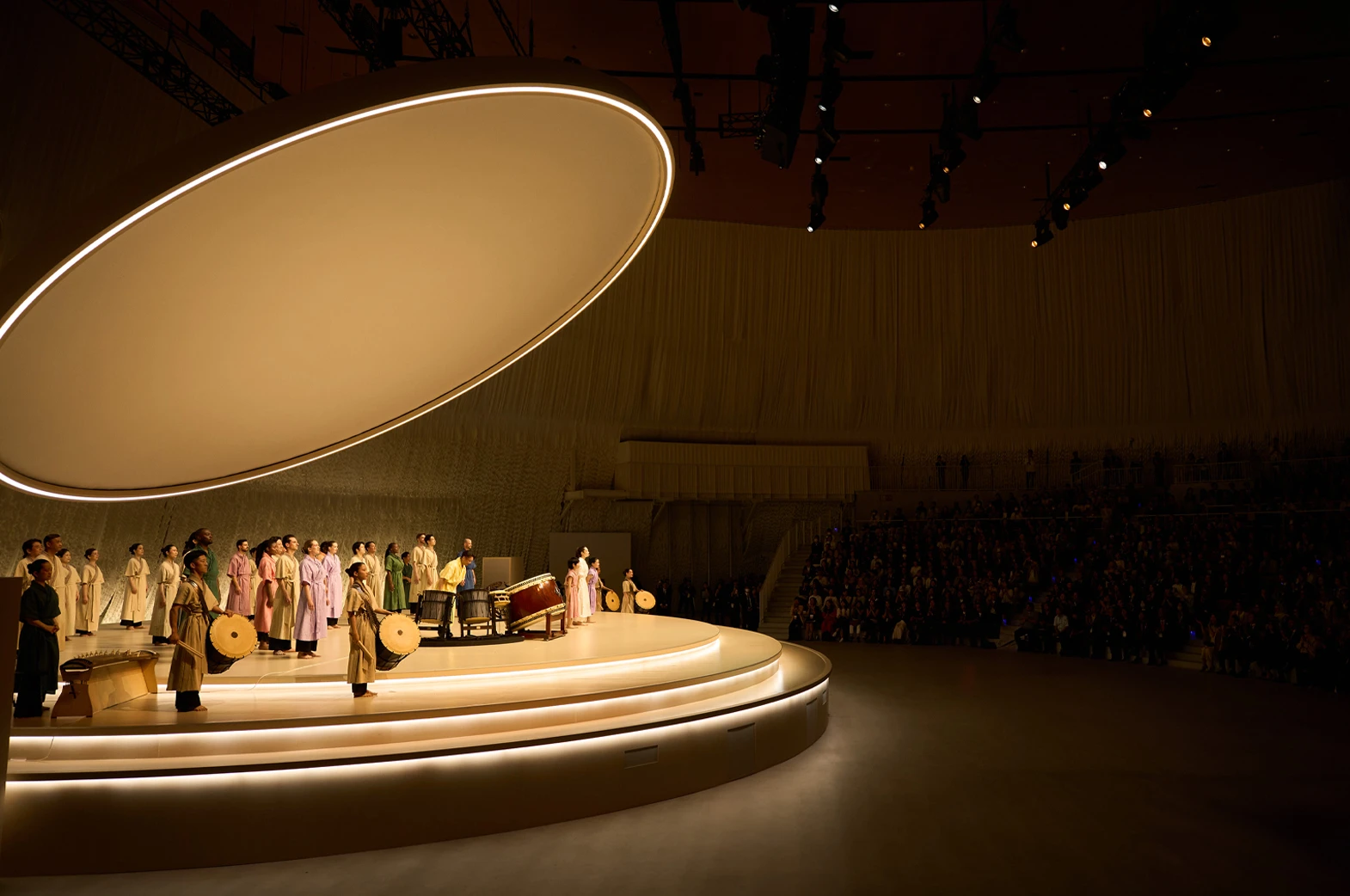 Equipped with headphones, visitors were guided by the voices of the three women into an open-air room dedicated to contemplation, the name of which—Ma—means “pause” or “interval”.