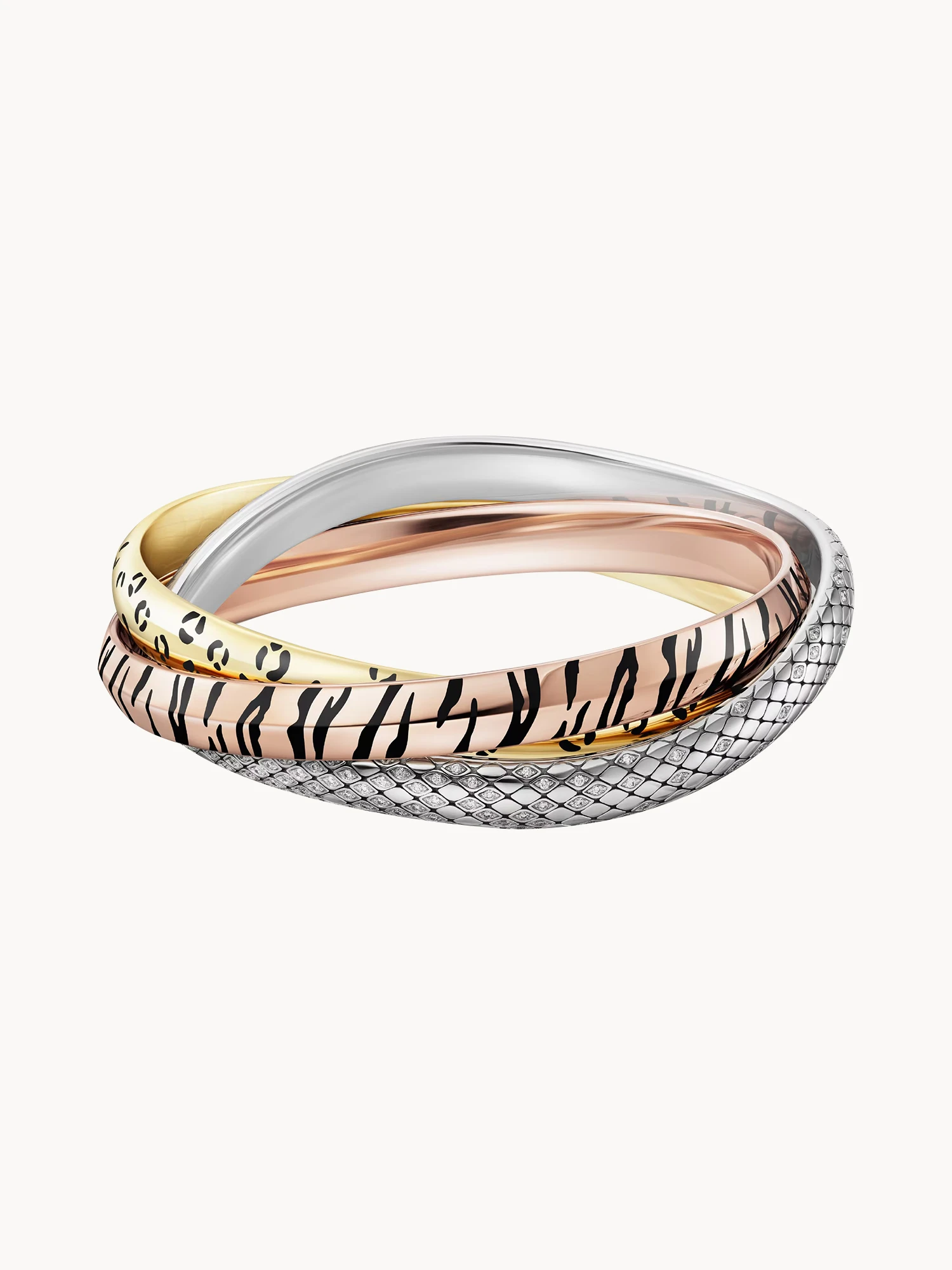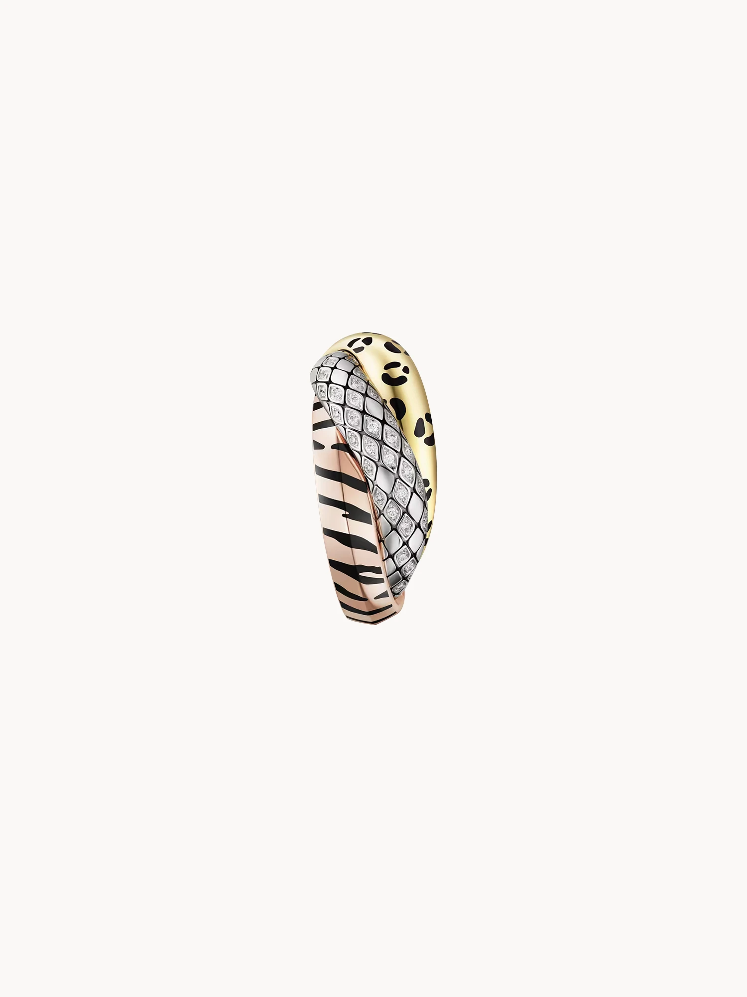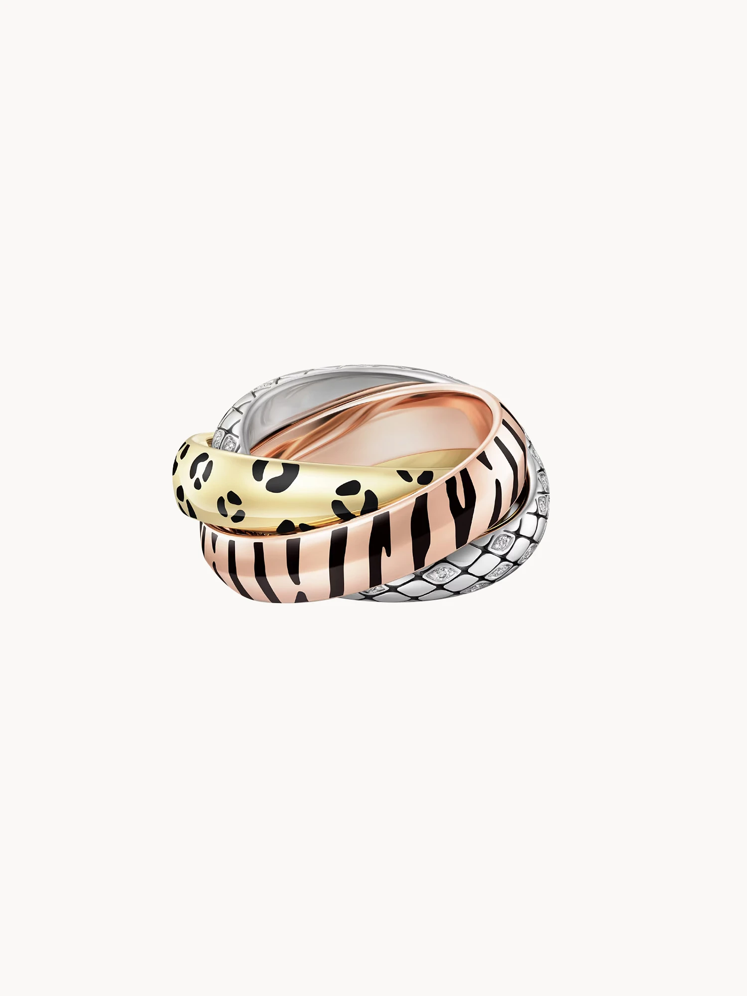 Tiger stripes, snake scales, panther spots...driven by the same desire to blur the lines, the Trinity ring draws on Cartier’s repertoire of animal motifs to disguise its appearance. The result is wildly audacious.